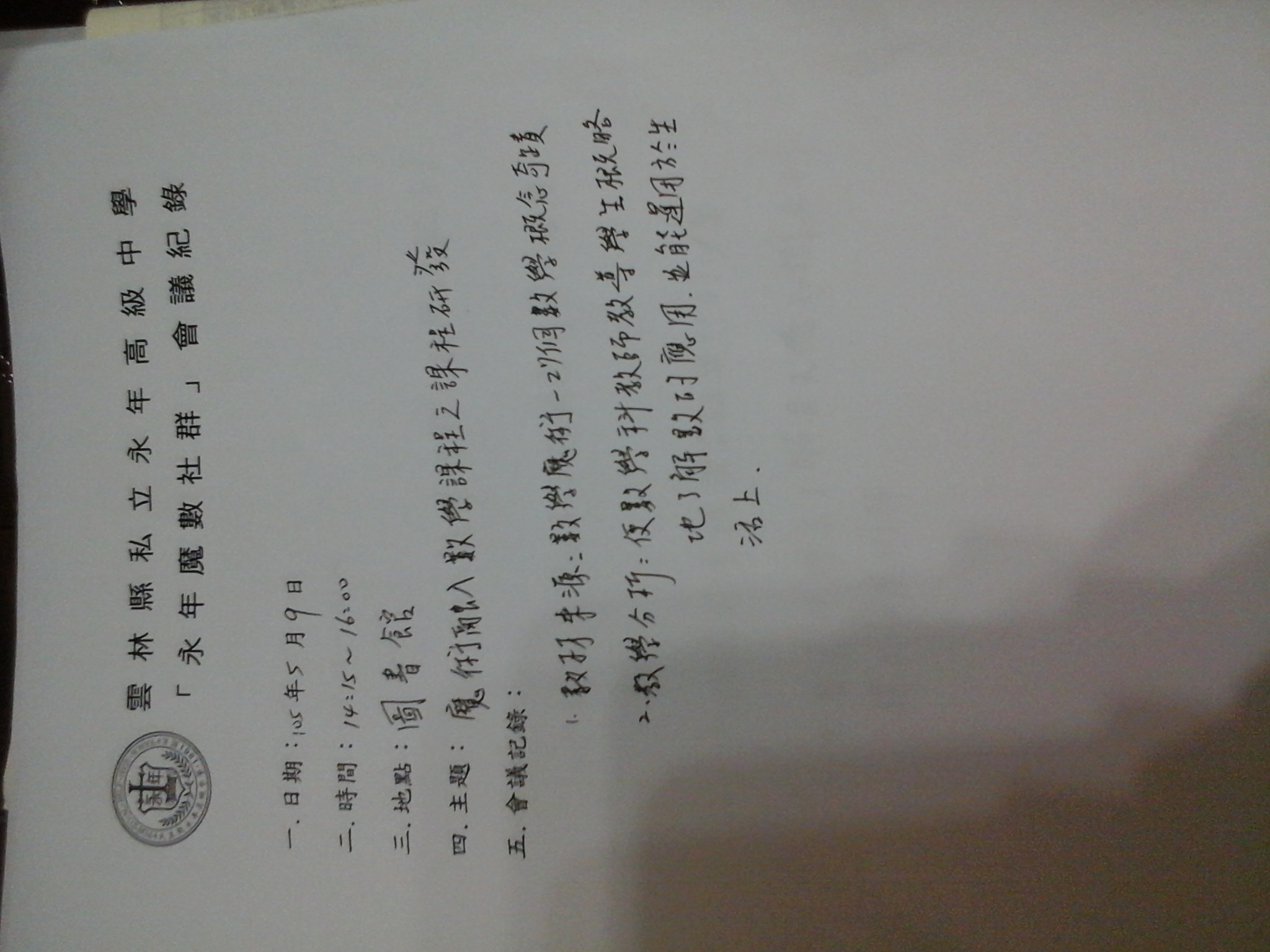 104學年度永年魔數社群會議紀錄-105.05.09 (