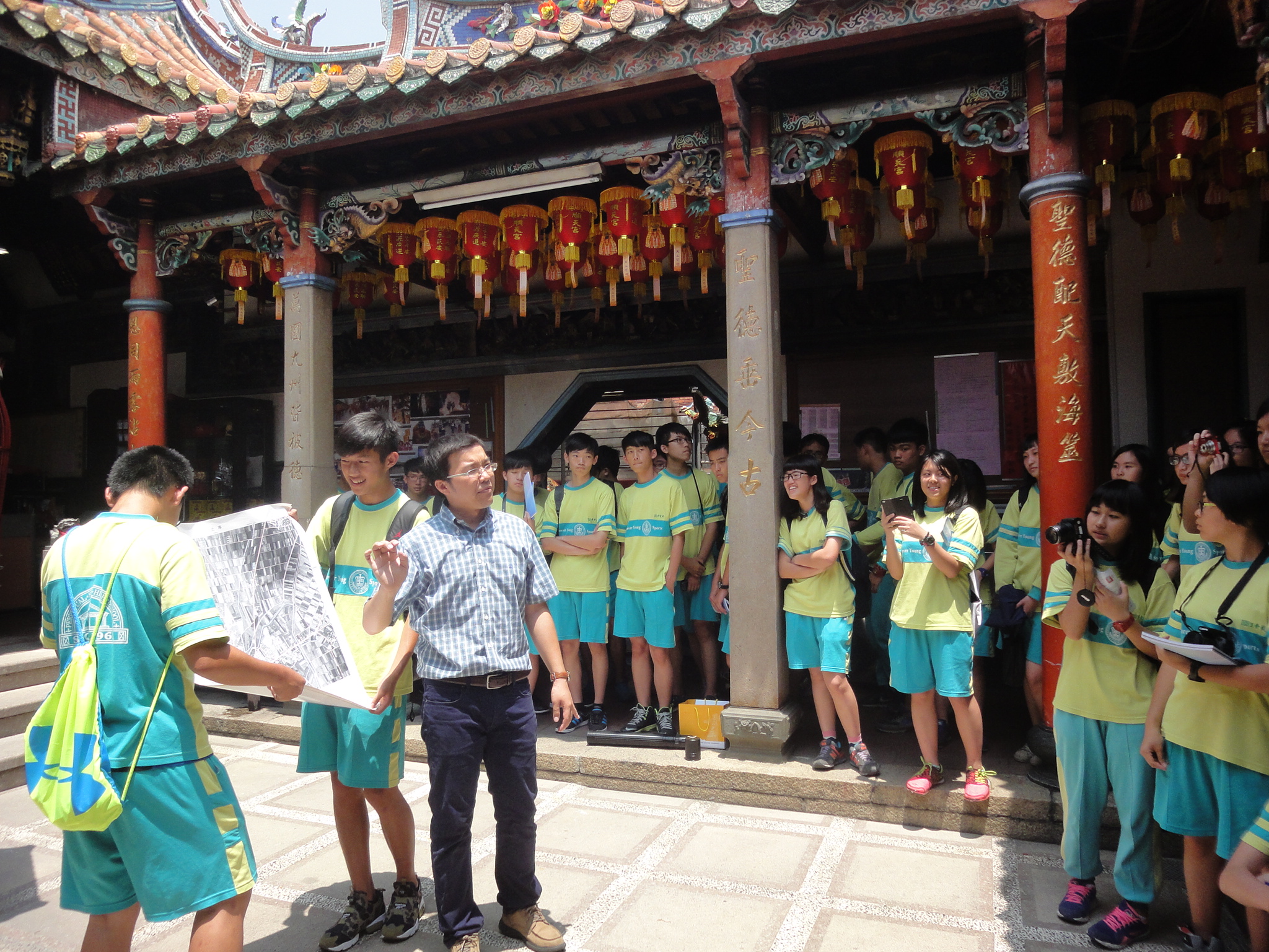 廖川盛教師於土庫順天宮解說土庫鎮航空照片圖